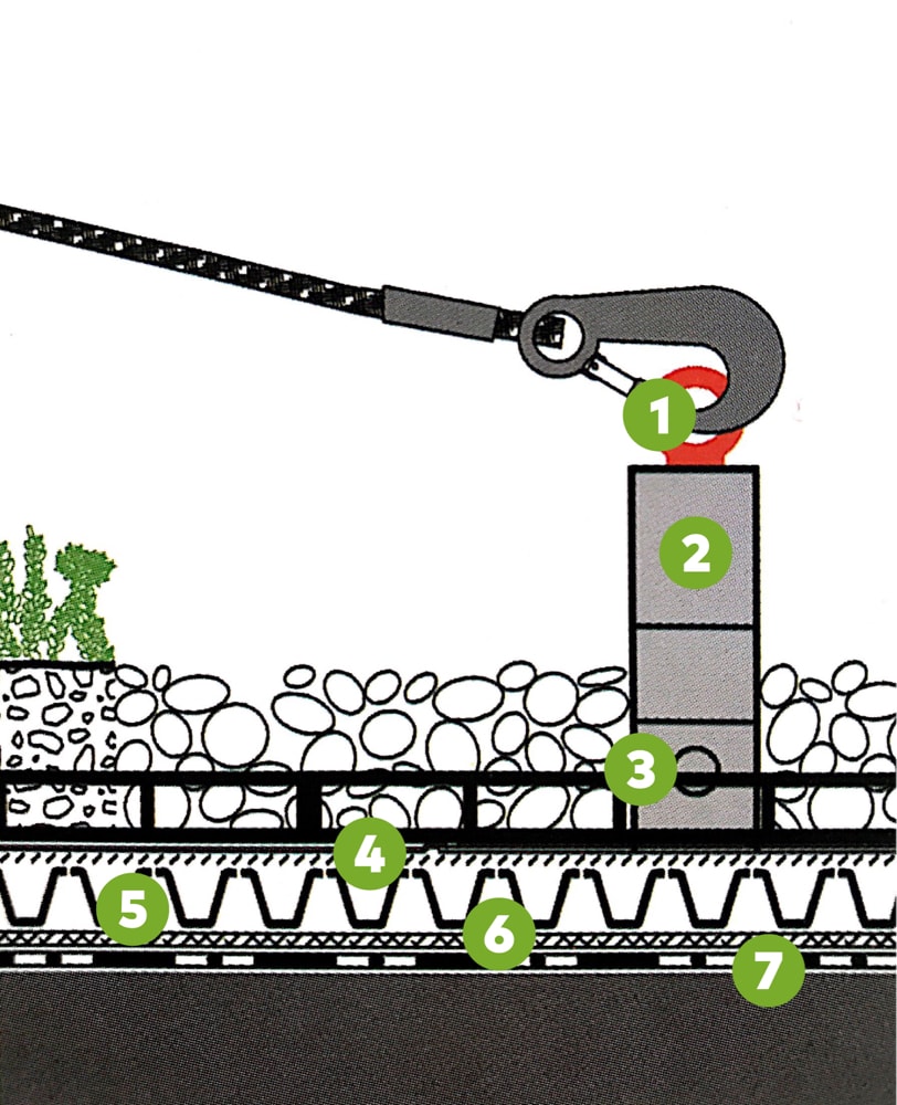 Fallnet® es una innovadora solución para garantizar la seguridad anticaídas a las personas de mantenimiento; previene accidentes mientras protege la impermeabilización y buen funcionamiento la cubierta.